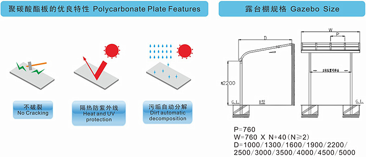 露臺棚常規(guī)尺寸:(特殊尺寸可電話咨詢)